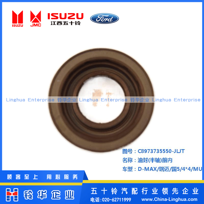 产品名称:油封(半轴)前内 适用车型:D-MAX/瑞迈/国5/4*4/MU-X 原厂编码:C8973735550-JLJT