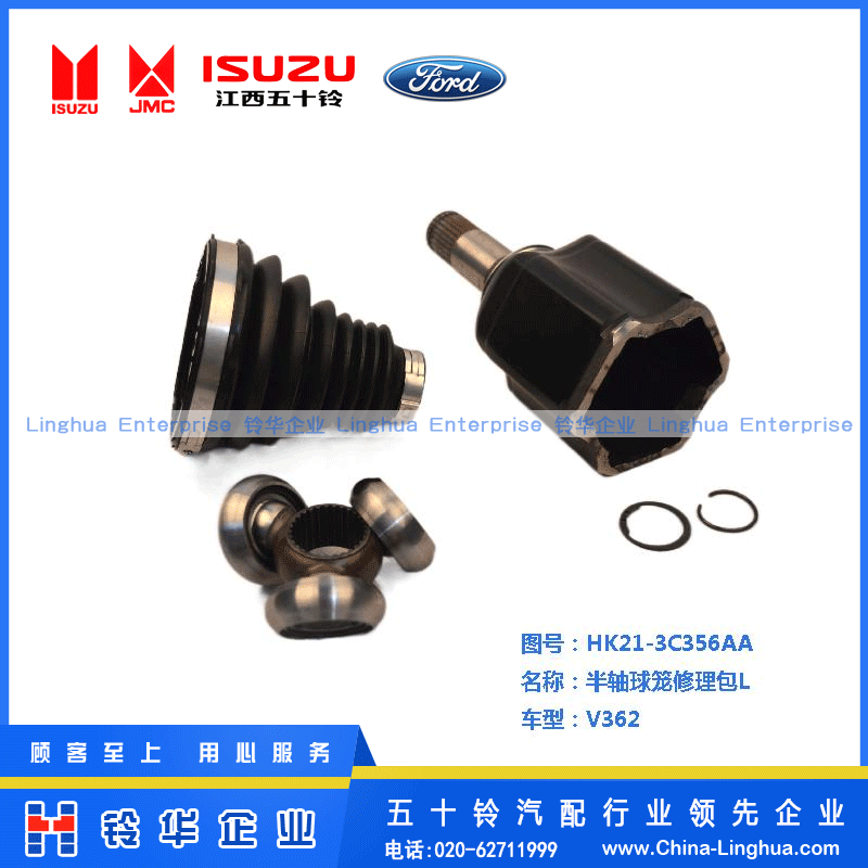 产品名称:半轴球笼修理包L 适用车型:V362 原厂编码:HK21-3C356AA